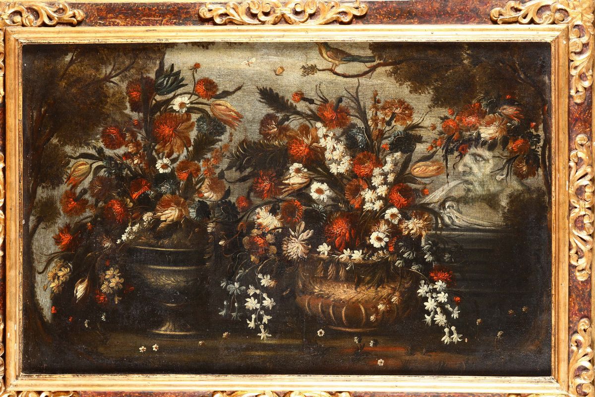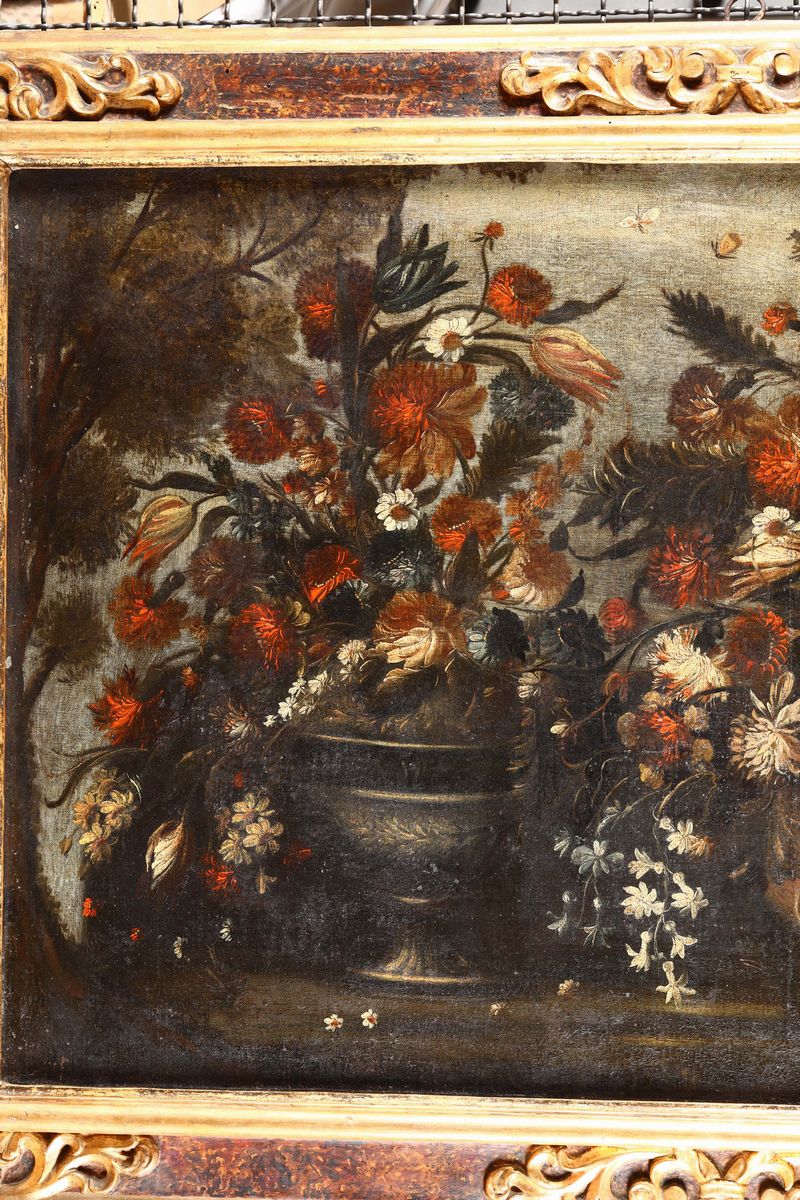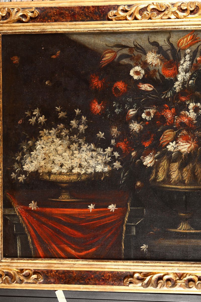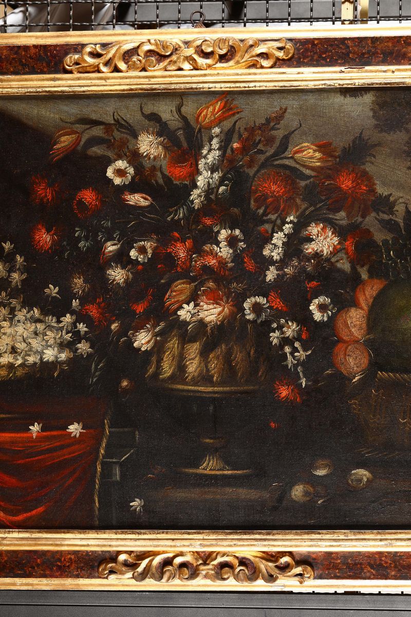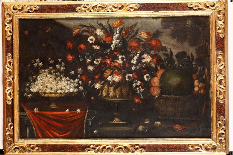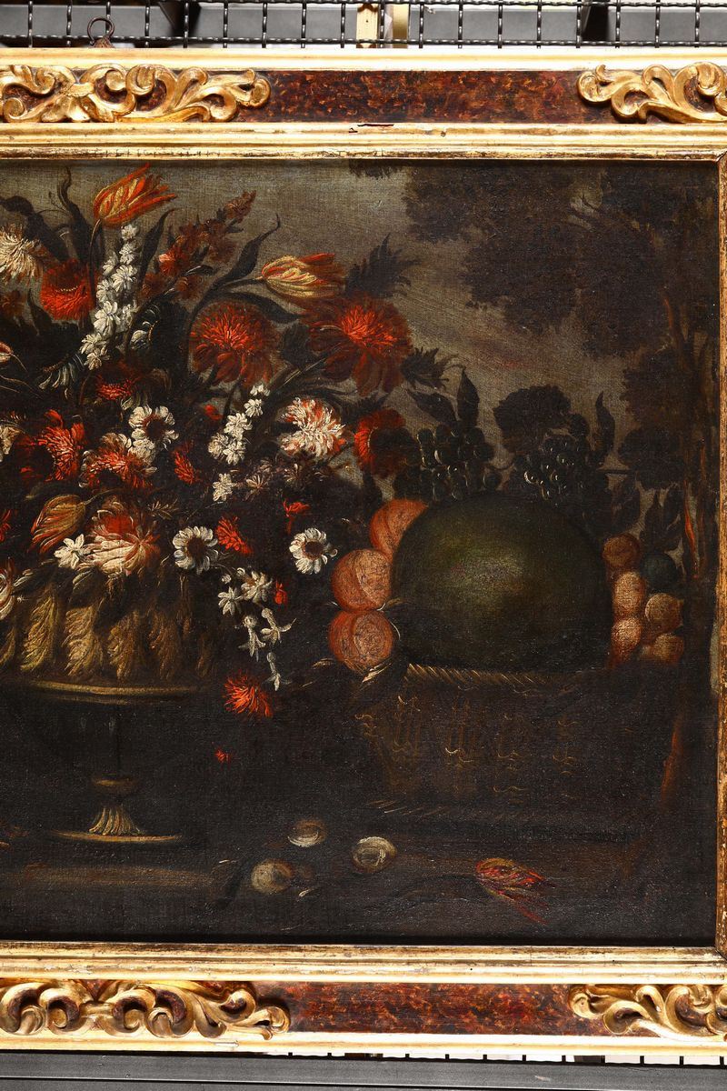 Scuola lombardo veneta del XVIII secolo Natura morta con fiori e frutta Natura morta con fiori