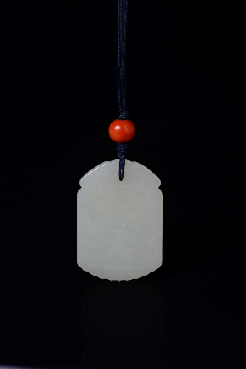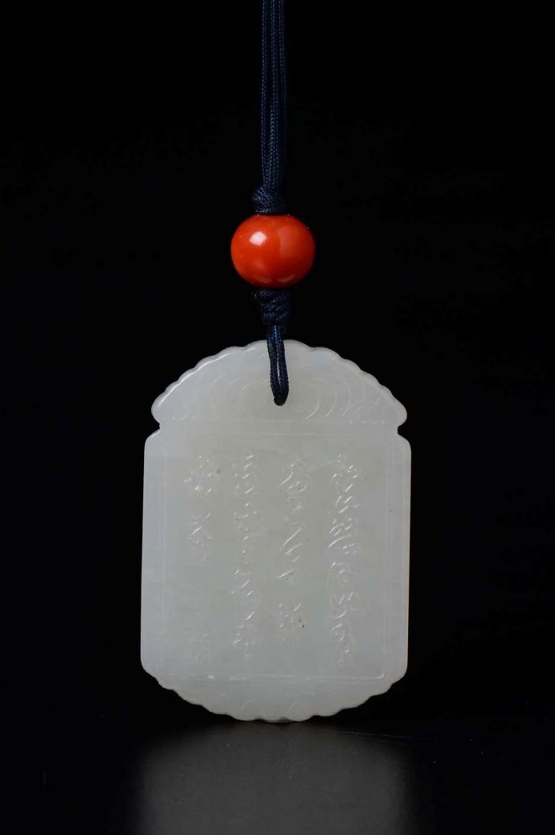 Ciondolo in giada bianca con iscrizioni, Cina, XX secolo