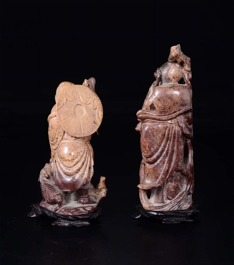 Due figure di saggi scolpiti in saponaria, Cina, Dinastia Qing, XIX secolo