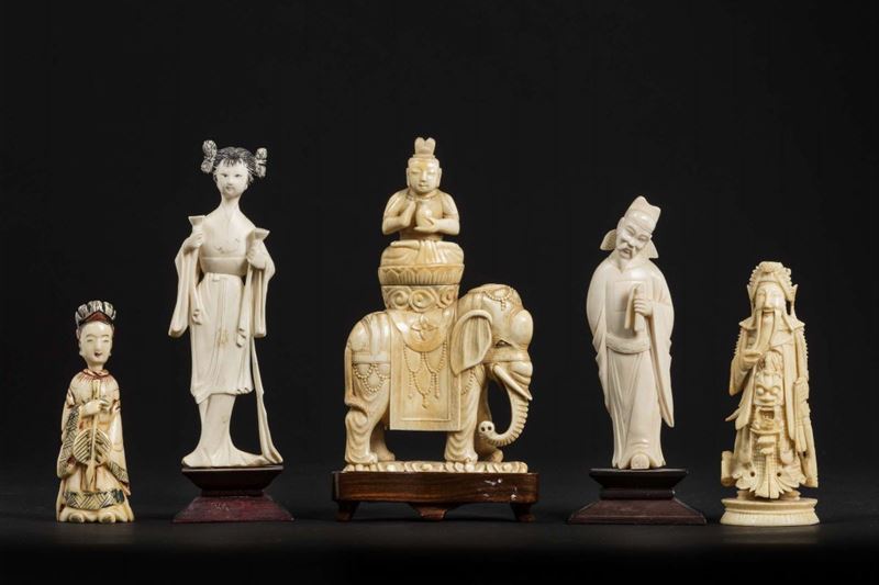 Lotto di dieci avori scolpiti, Cina, fine XIX/inizio XX secolo