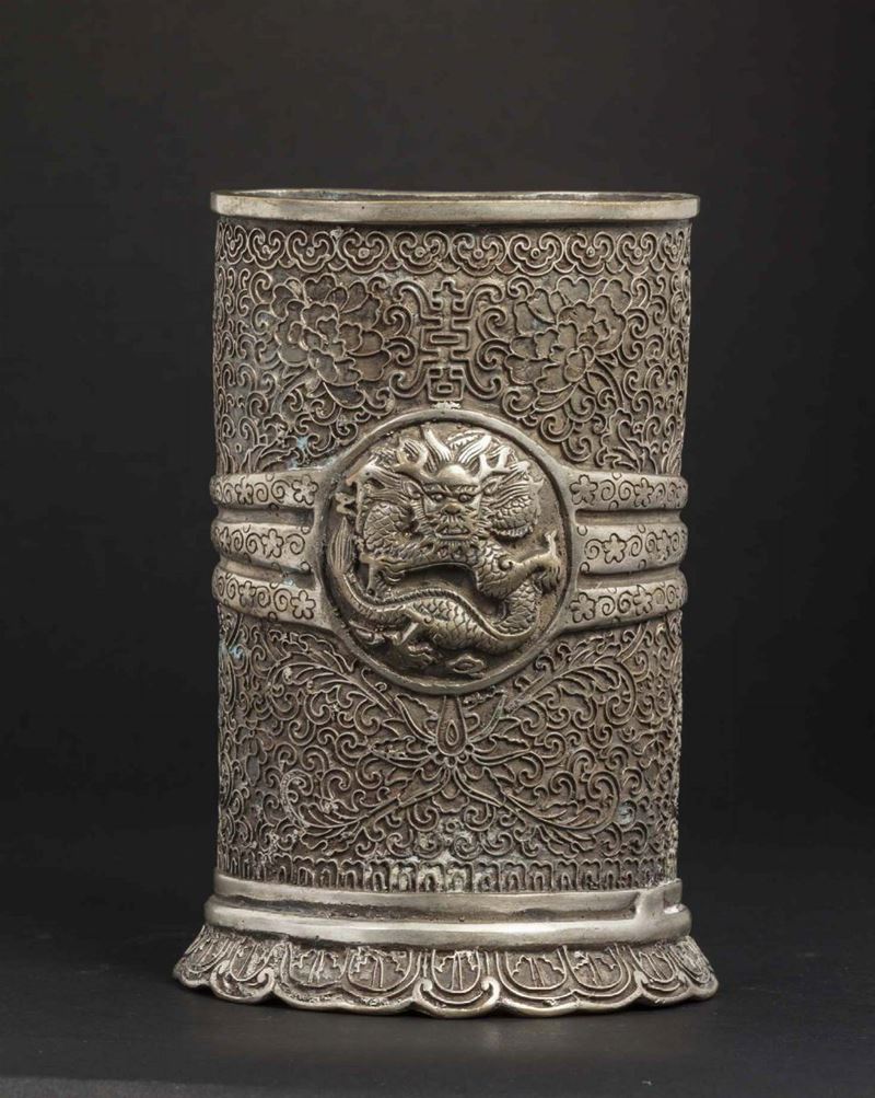 Portapennelli in argento, Cina, Dinastia Qing, XIX secolo