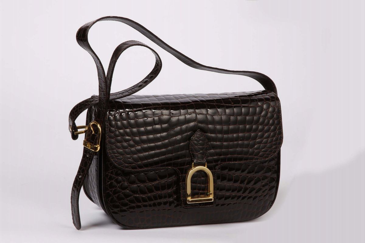 in coccodrillo marrone, cm 17x28