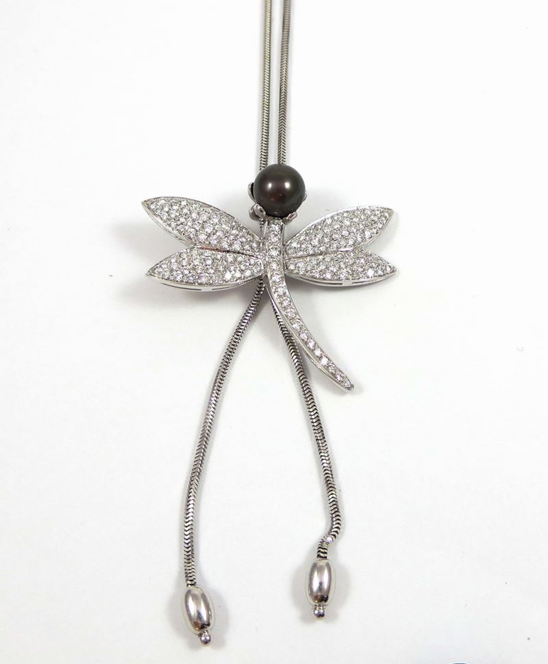 Saliscendi Libellula con perla grigia e pavé di diamanti