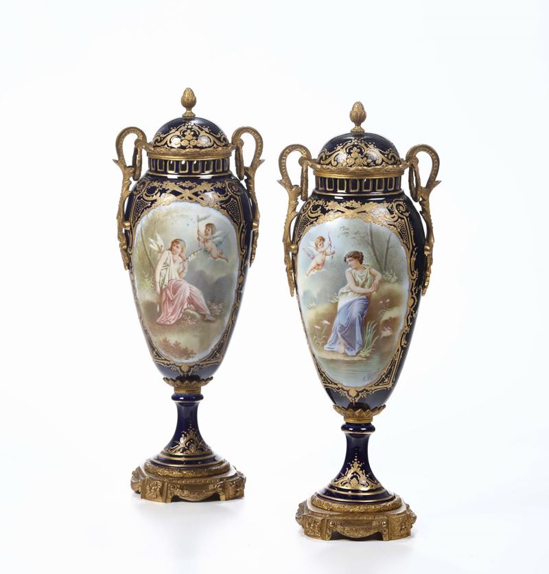 Coppia di vasi in porcellana di Sevres, XIX secolo