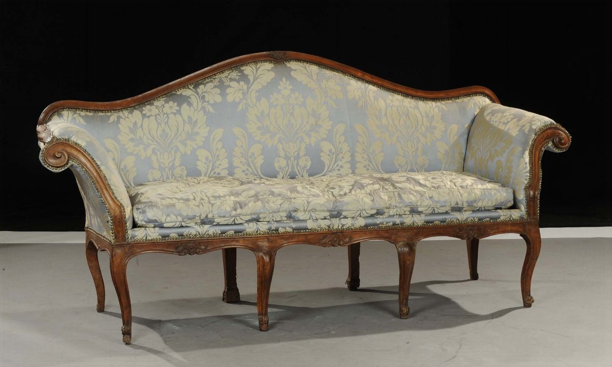 Divano Luigi XV in noce intagliato, XVIII secolo