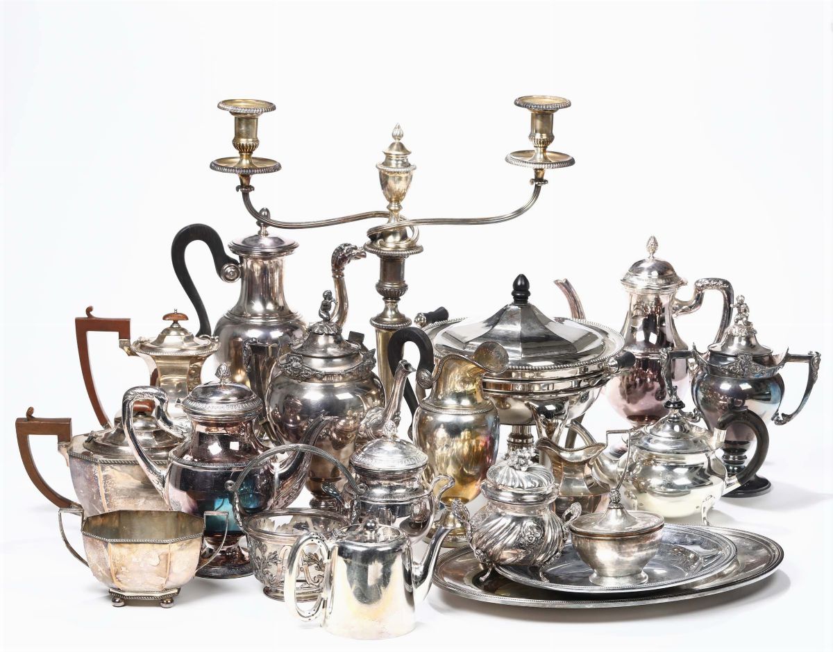 tra cui due vassoi Christofle e alcuni servizi da te e caffé
