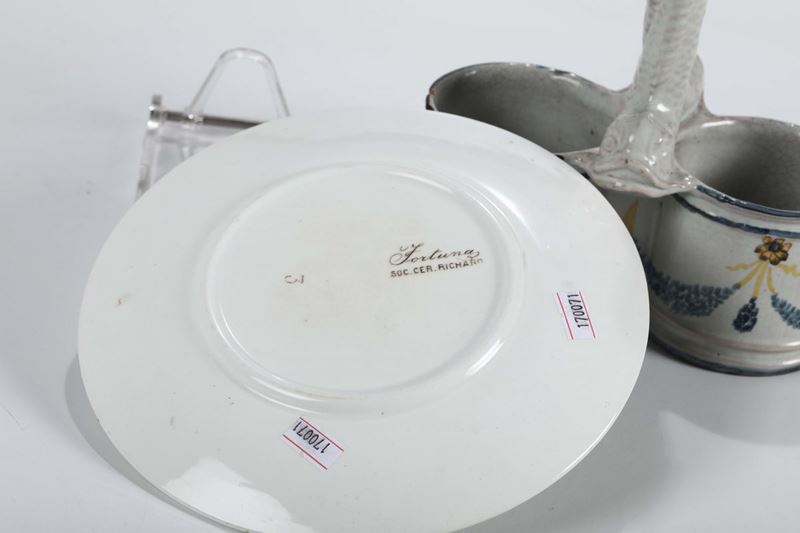 Piattino e oliera in porcellana policroma, XIX-XX secolo