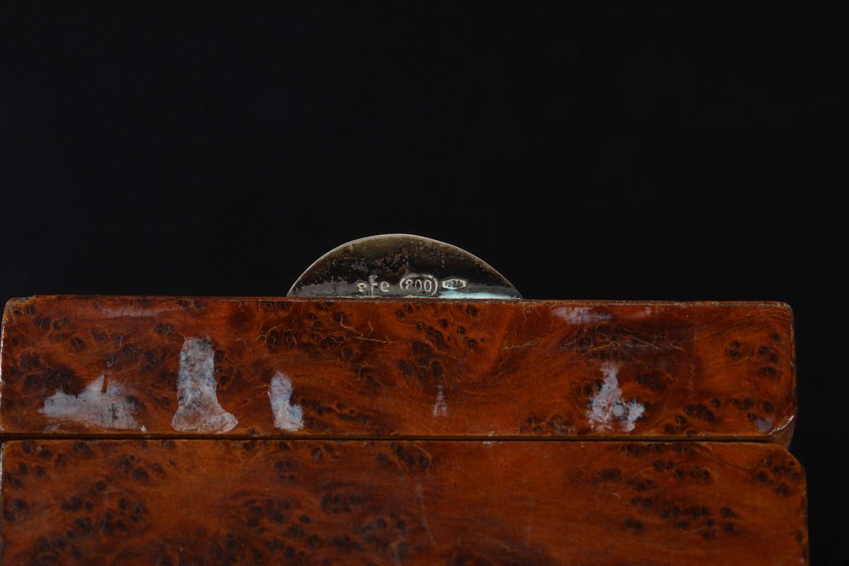 Piccola scatola in legno decò e un portafiammiferi in argento