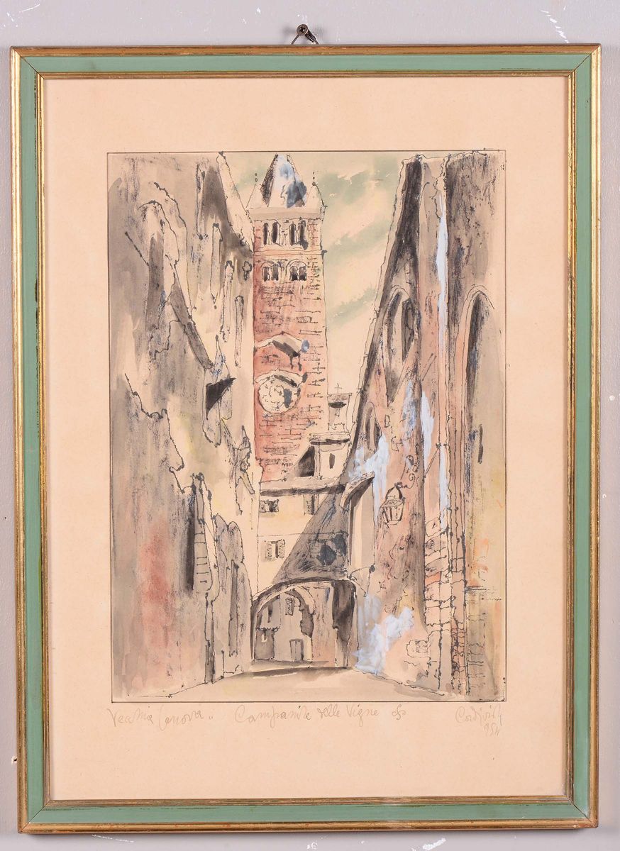 Renzo Cordiviola (1910-2000) Il ponte di Carignano Campanile delle Vigne