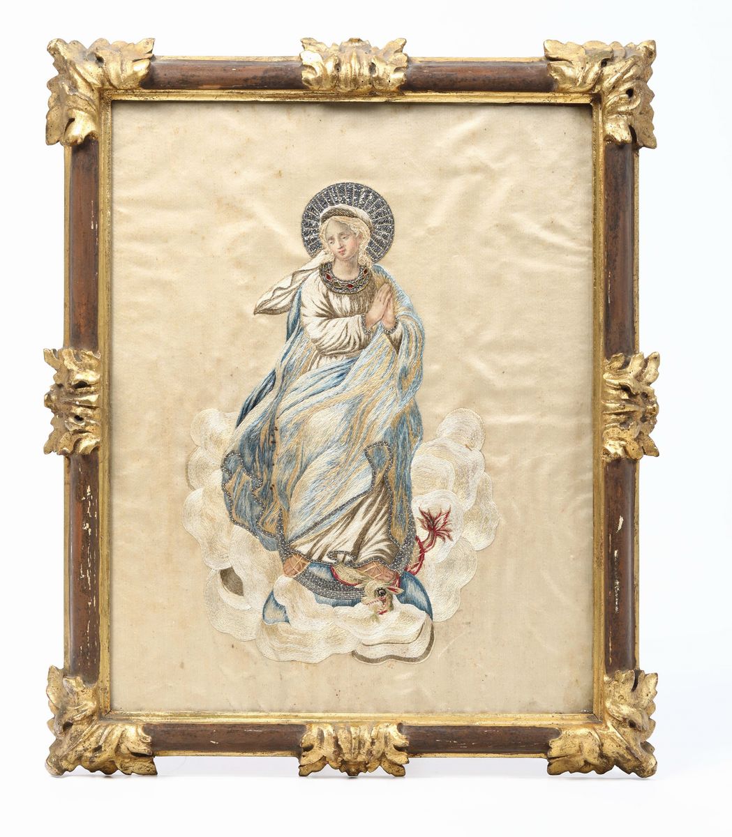 Ricamo raffigurante Madonna, XVIII secolo,