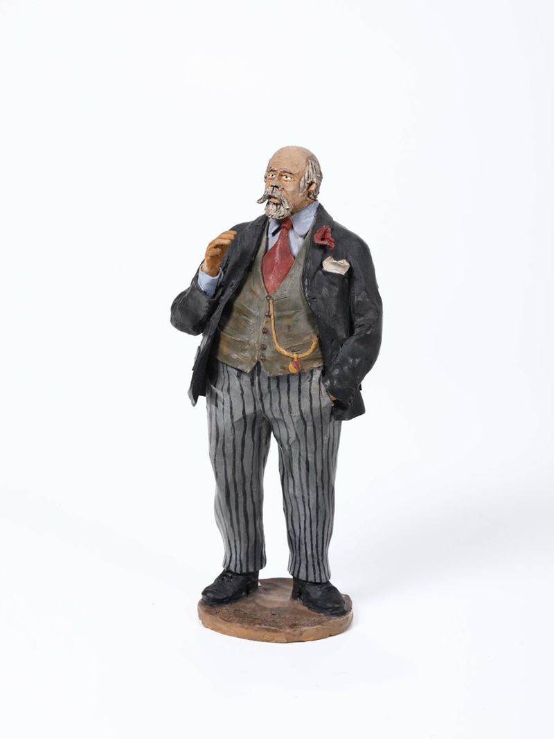 Figura panciuta firmato e datato alla base 1975 terracotta smaltato, altezza cm 31