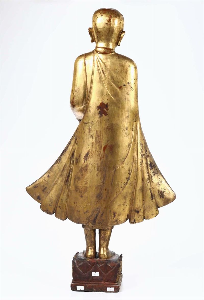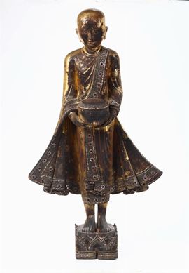 Scultura in legno dorato raffigurante Bonzo, Birmania, XIX secolo