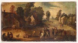 Scuola fiamminga del XVII secolo Paesaggio con figure