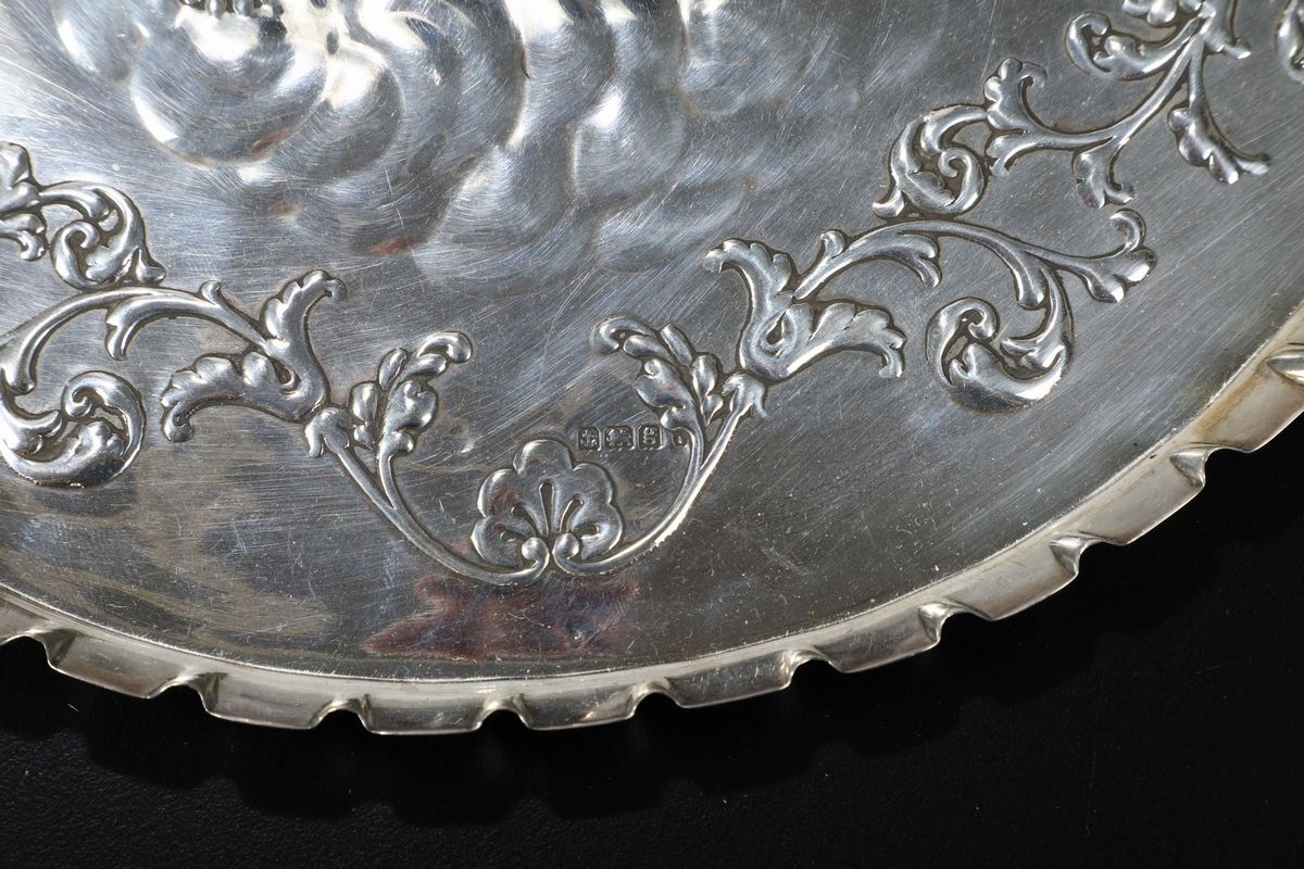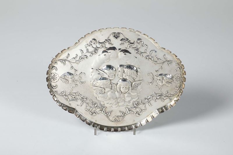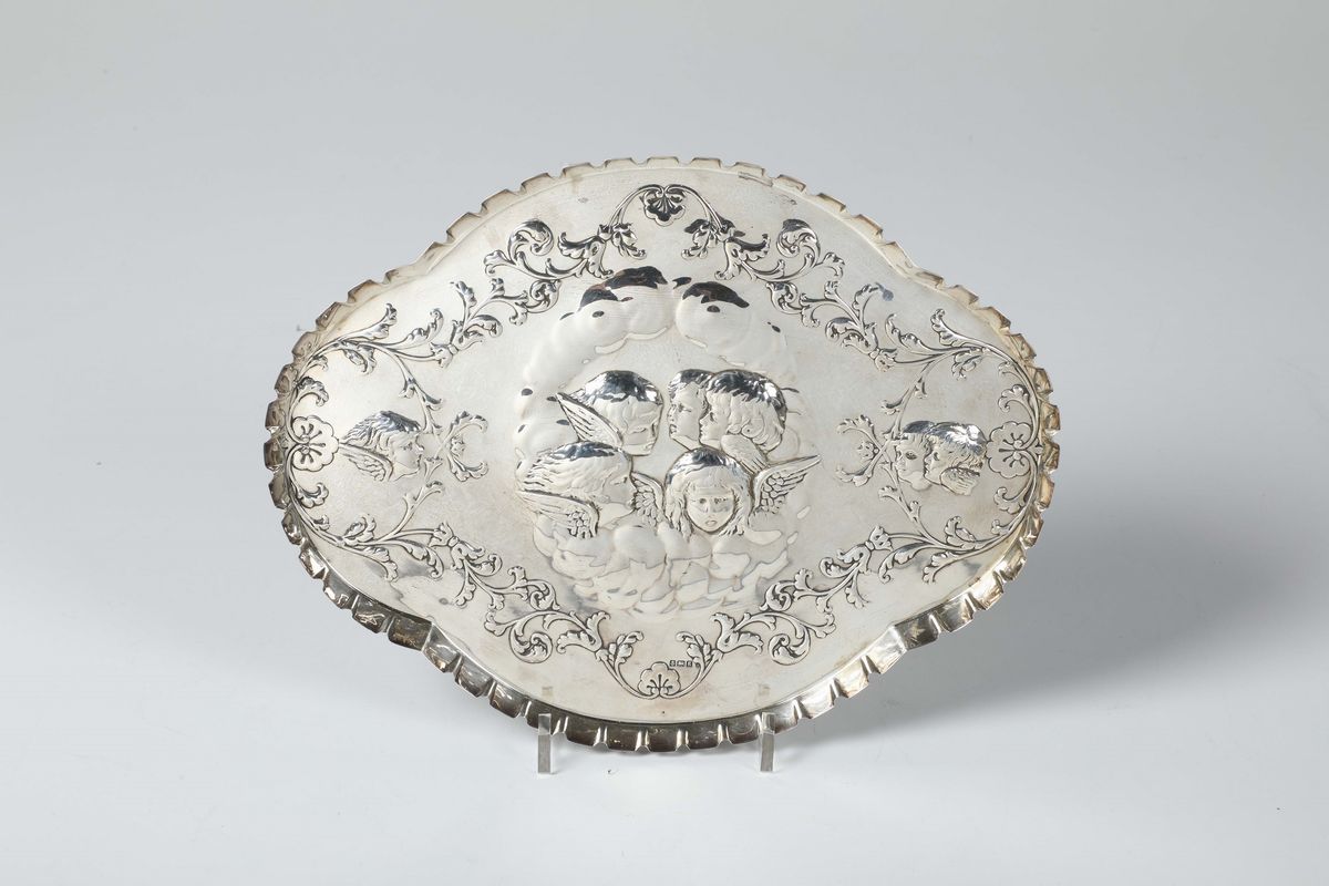 Vassoio portapasta in argento sbalzato, Inghilterra XX secolo