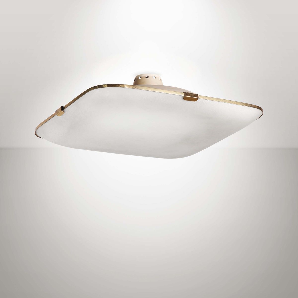 Lampada a plafoniera con struttura in metallo laccato e diffusore in vetro.Prod. Fontana Arte,Italia, 1950 ca.cm 60x20x60