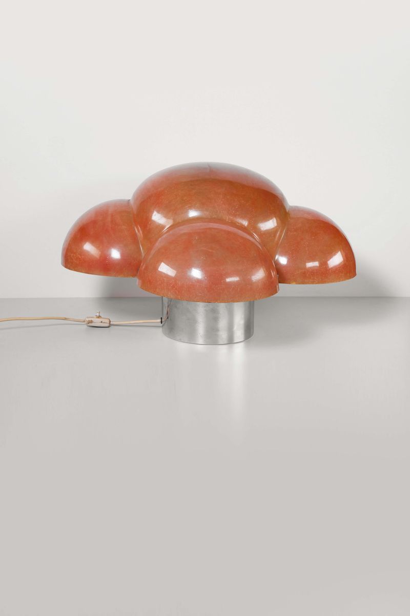Lampada da tavolo con diffusore in bra di vetro e struttura in metallo cromato. Prod. Italia, 1969 cm 67x40x67