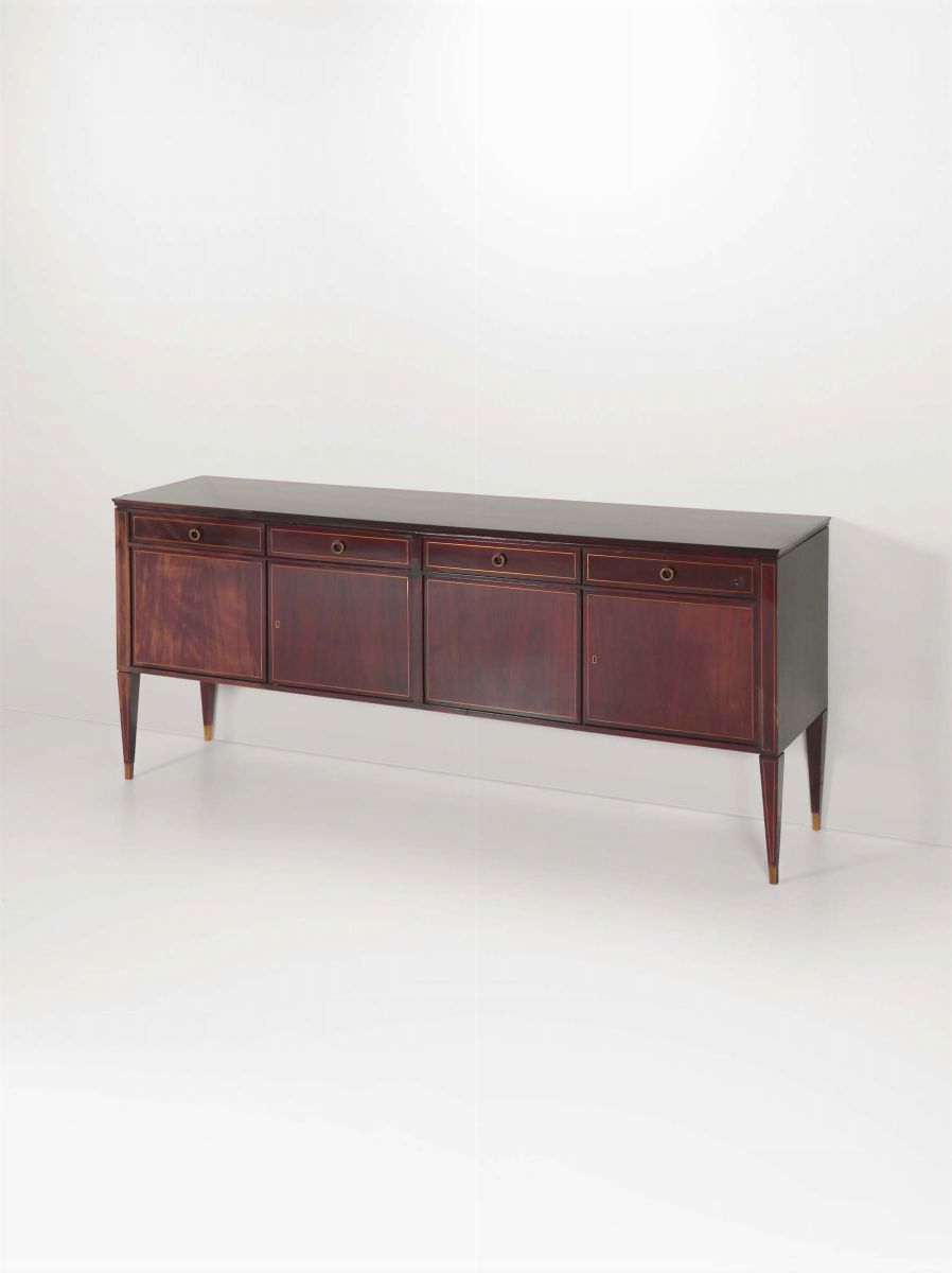 Credenza in legno con dettagli in ottone. Prod. Italia, 1950 ca. cm 200x90x45