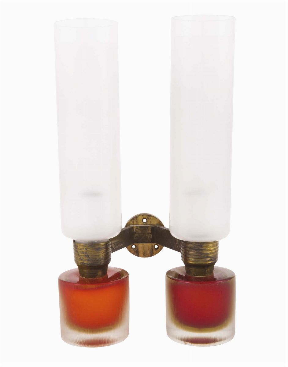 Applique in vetro sommerso inciso, diffusore in vetro sabbiato. Prod. Venini, Italia, 1950 ca. cm 15x28x21