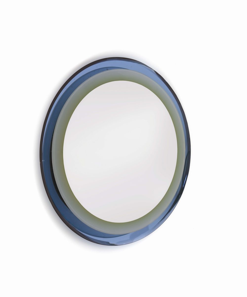 Specchio retroilluminato con cornice in vetro colorato e molato.