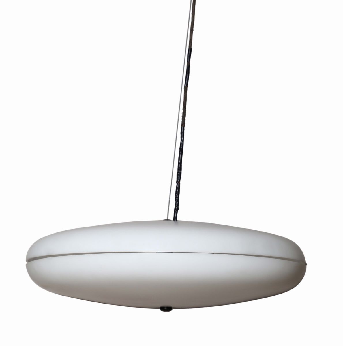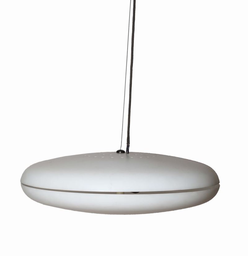 Coppia di lampade a sospensione con diffusori in perspex. Prod. Stilnovo, Italia, 1950 ca. cm 53