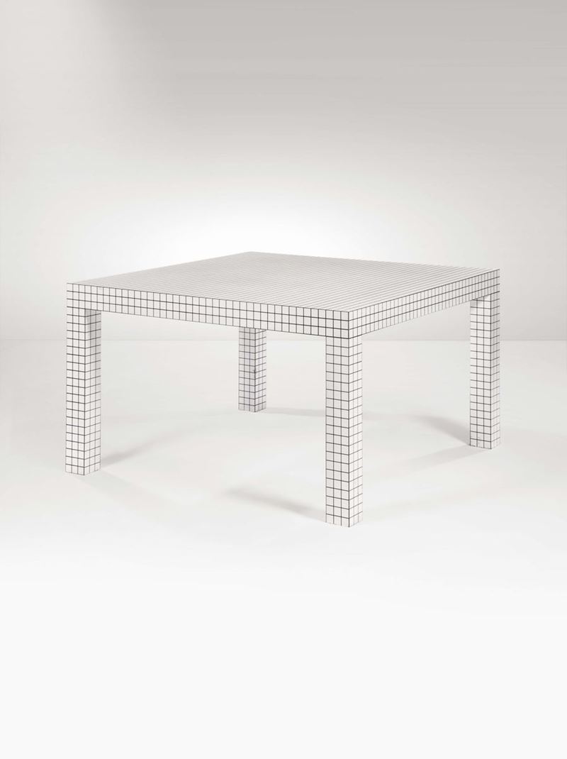 Tavolo Quaderna 2600 in legno e legno laminato. Prod. Zanotta, Italia, 1970 ca. cm 126x126