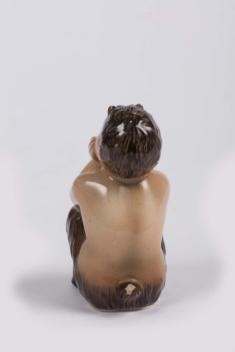 Faunetto in terraglia a colaggio dipinto in policromia.