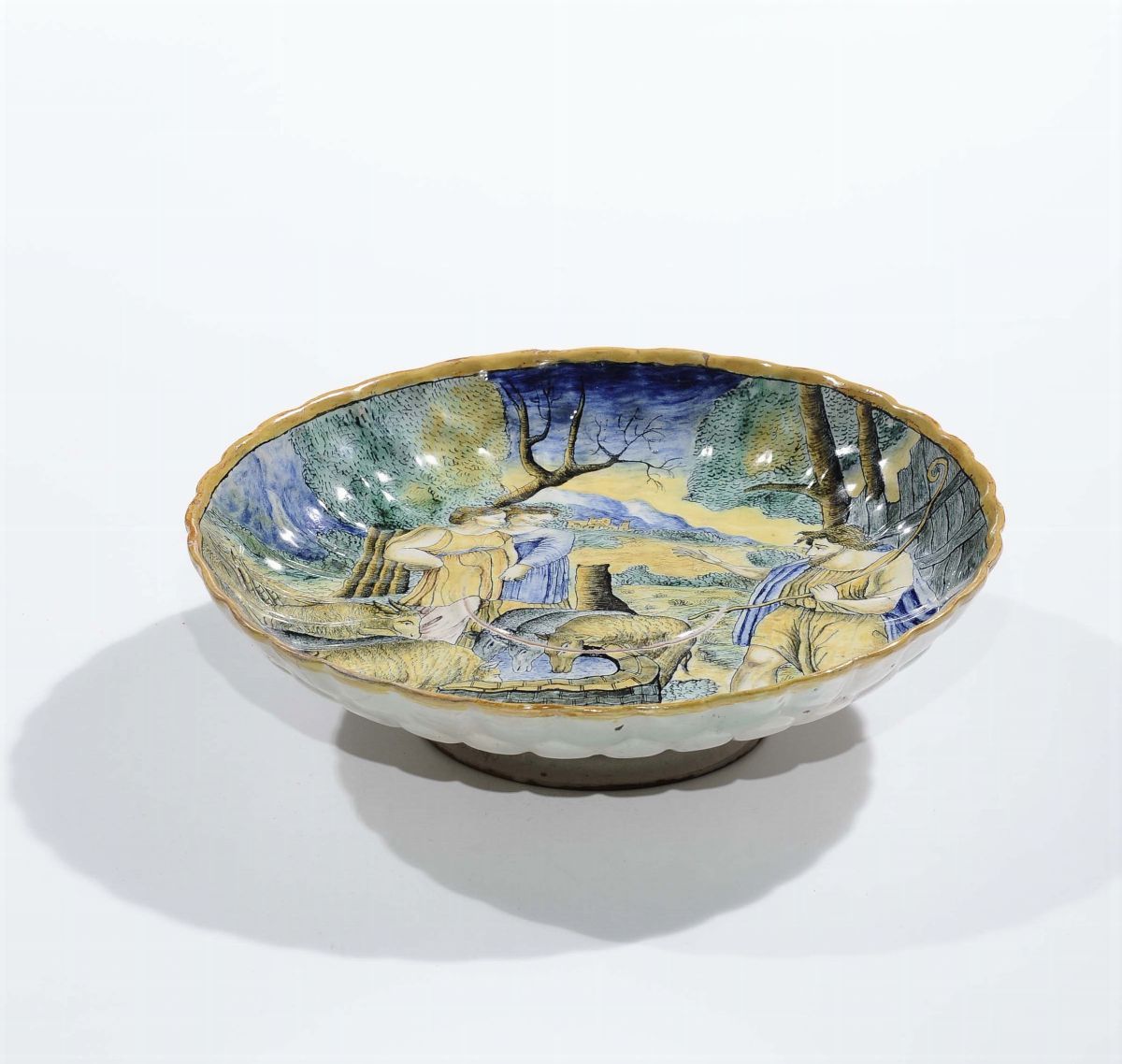 Alzatina in maiolica a decoro istoriato, XX secolo
