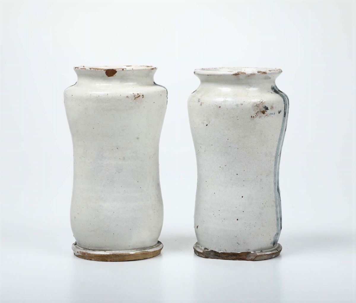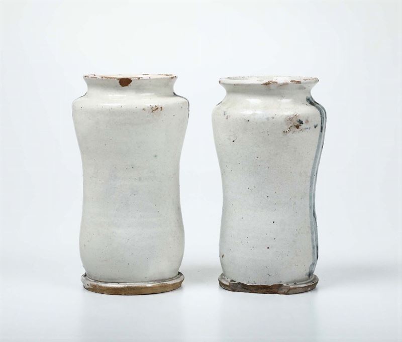 Coppia di albarelli in maiolica, centro Italia XVIII-XIX secolo