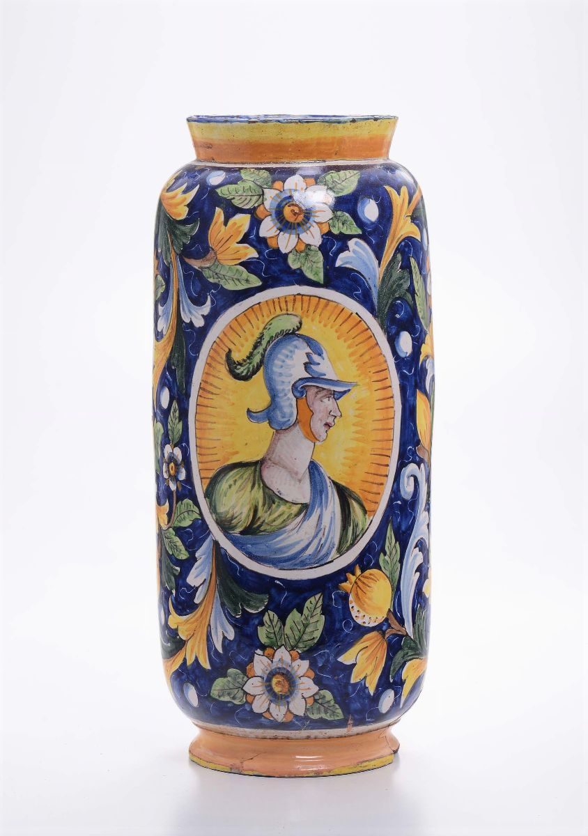 Grande vaso in maiolica con profilo di guerriero, XVIII-XIX secolo
