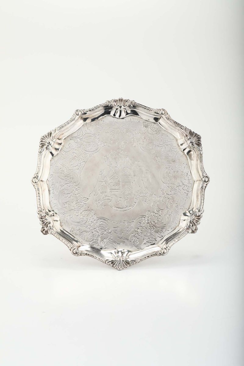 Salver circolare in argento con decoro sul bordo, Inghilterra XIX secolo