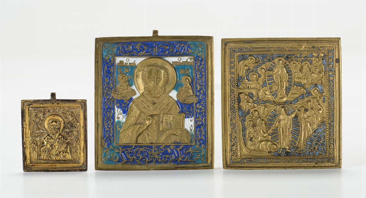 Tre placche in bronzo dorato, arte ortodossa, XIX/XX secolo