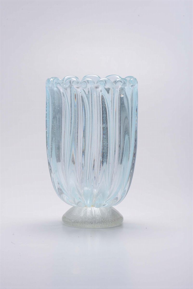 Vaso in vetro maculato azzurro verde con tracce di doratura, XX secolo