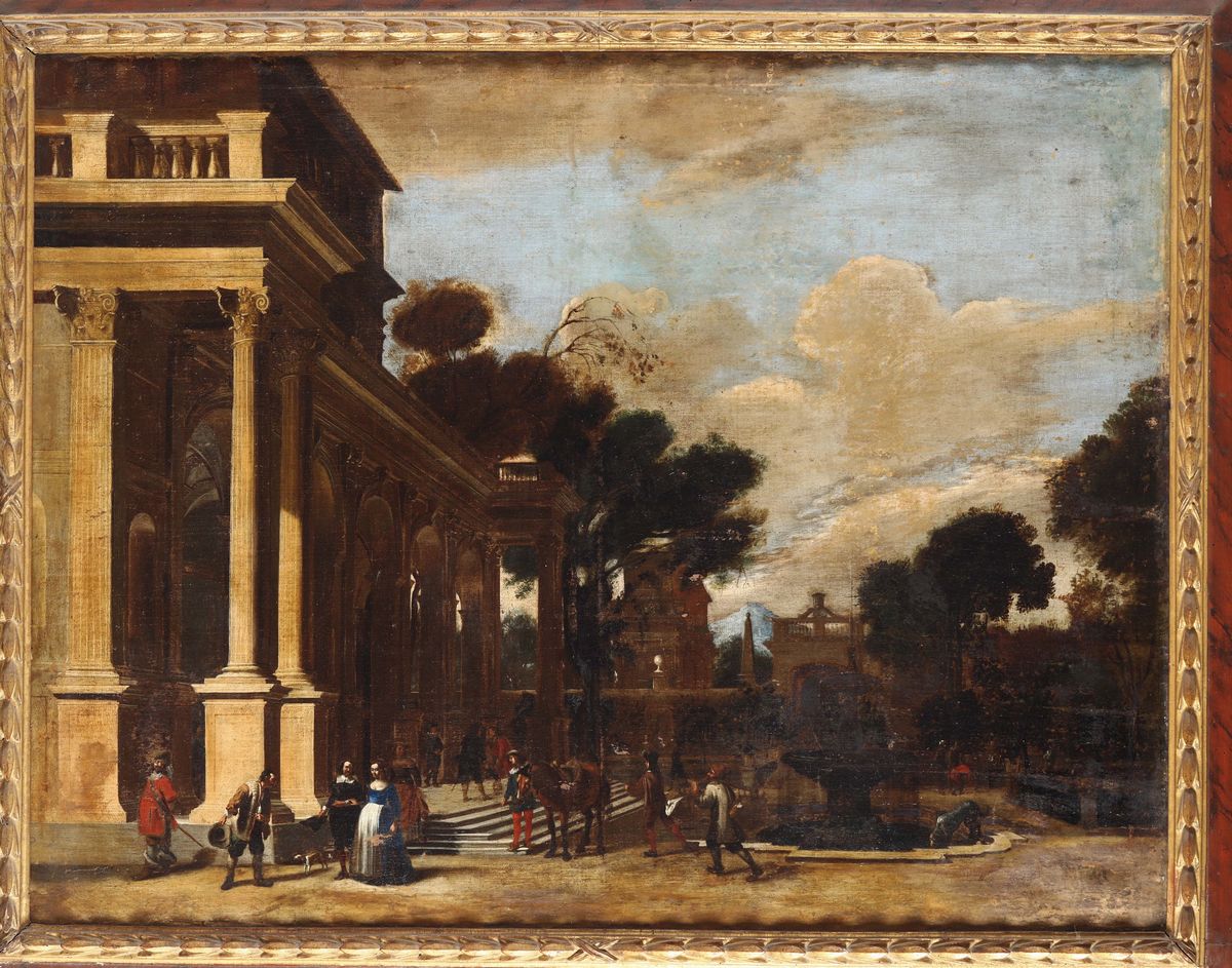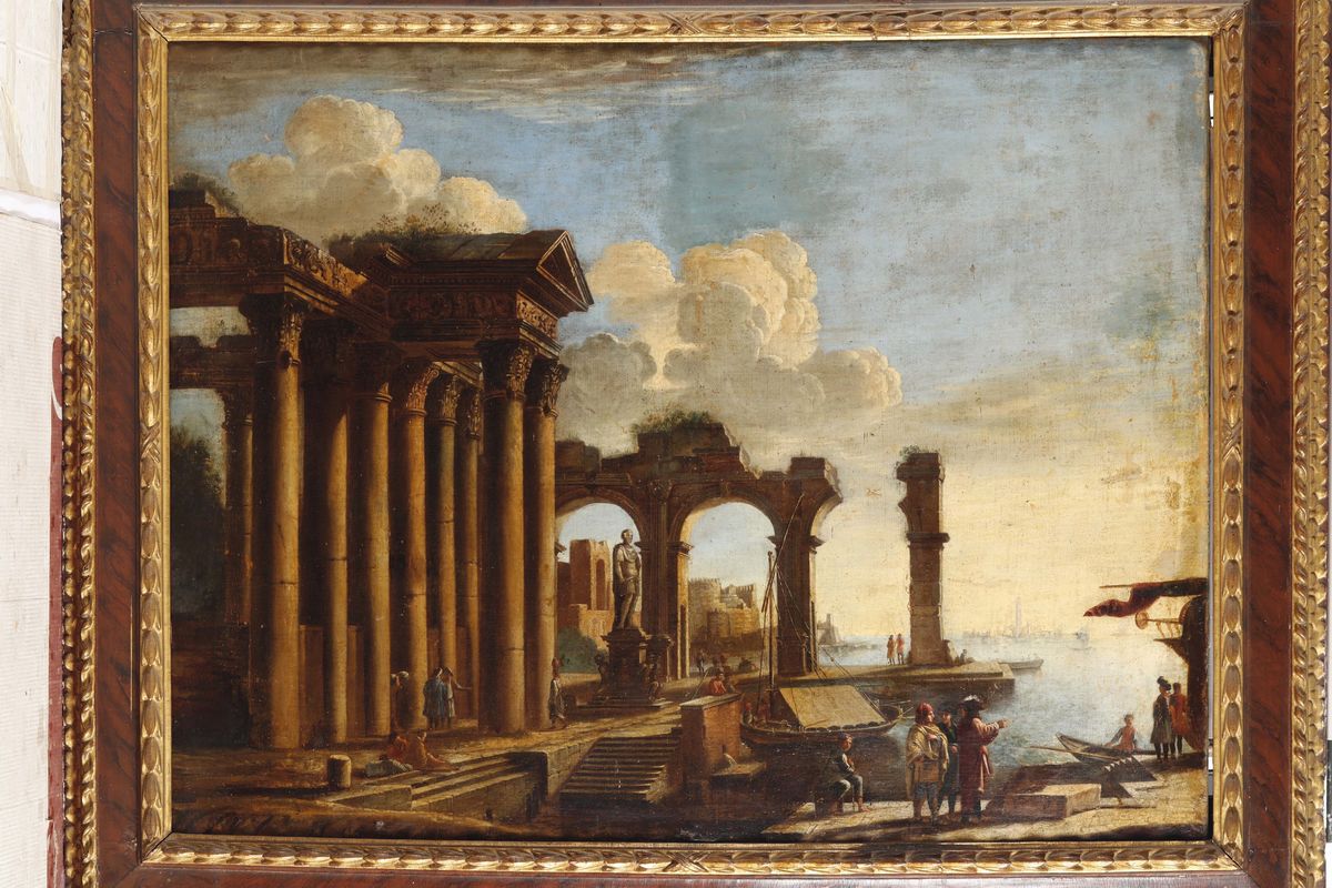 Michelangelo Cerquozzi (Roma 1602 - 1660), attribuito a Paesaggi con architetture e personaggi