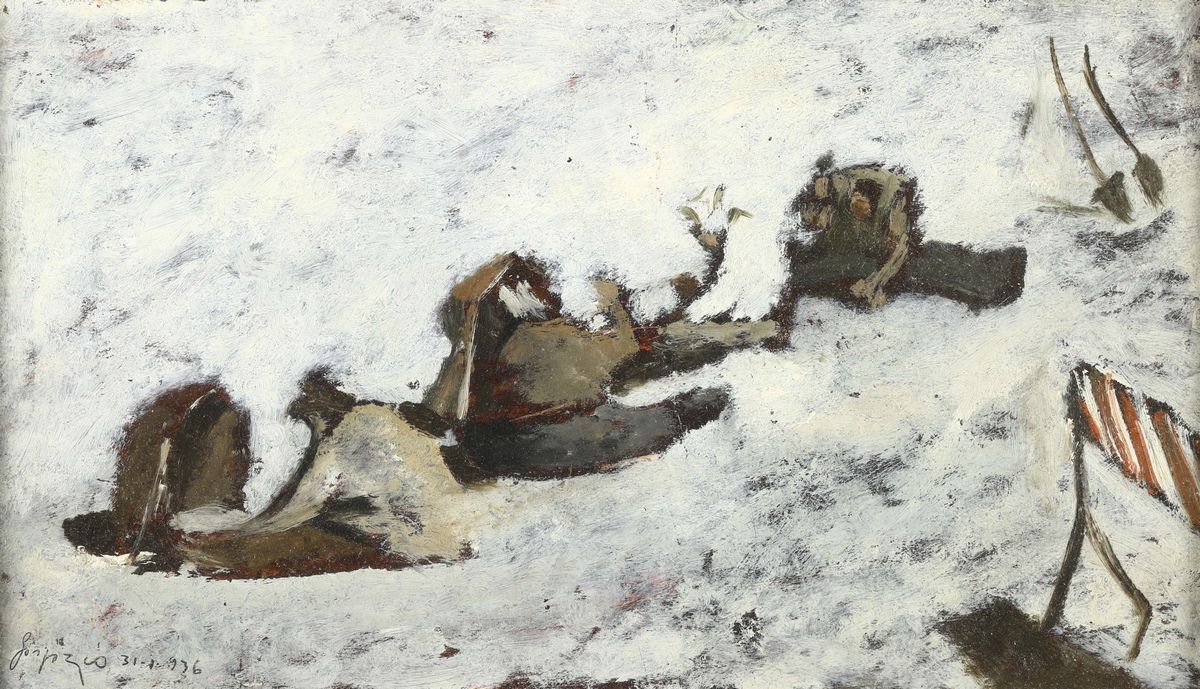 olio su cartoncino, cm 17x29, firmato in basso a sinistra