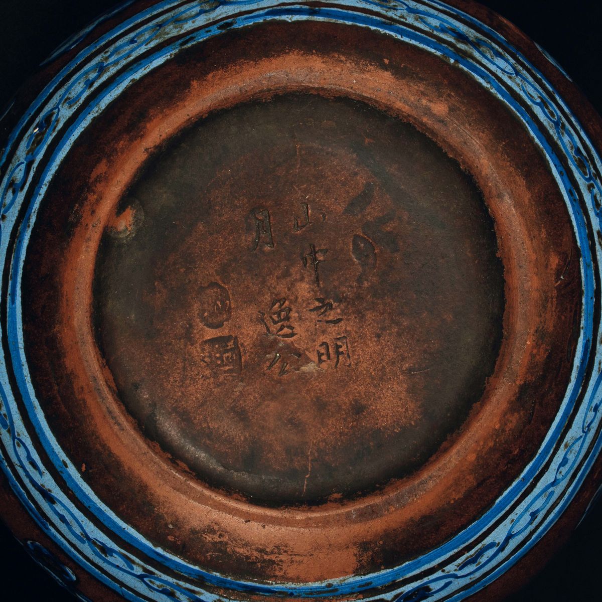 Teiera in terracotta Yixing con decoro a smalto blu, Cina, Dinastia Qing, XIX secolo
