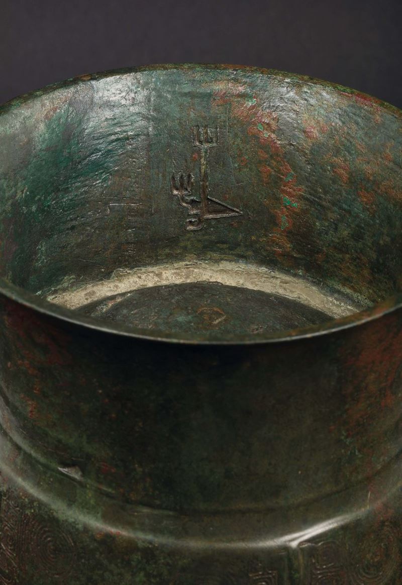 Vaso in bronzo Zun a decoro geometrico, Cina, Dinastia Zhou (1027-221 a.C.)