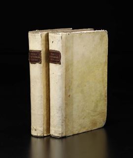 In-folio. Legatura coeva in mezza pergamena. Buon esemplare genuino, non esente da macchie e bruniture. Timbri ai frontespizi. Un ricco apparato iconografico di tavole nel testo.