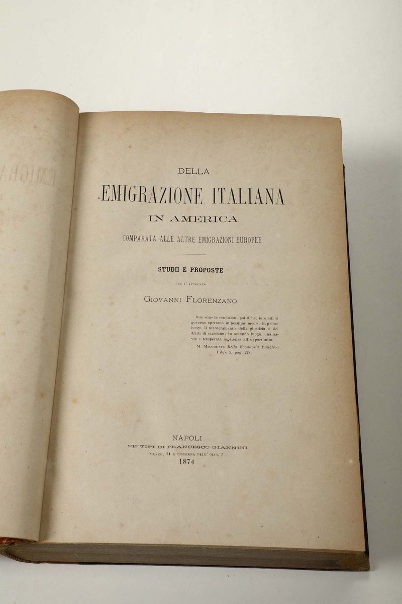 Florenzano, Giovanni Della emigrazione italiana in America...,Napoli, Giannini, 1874