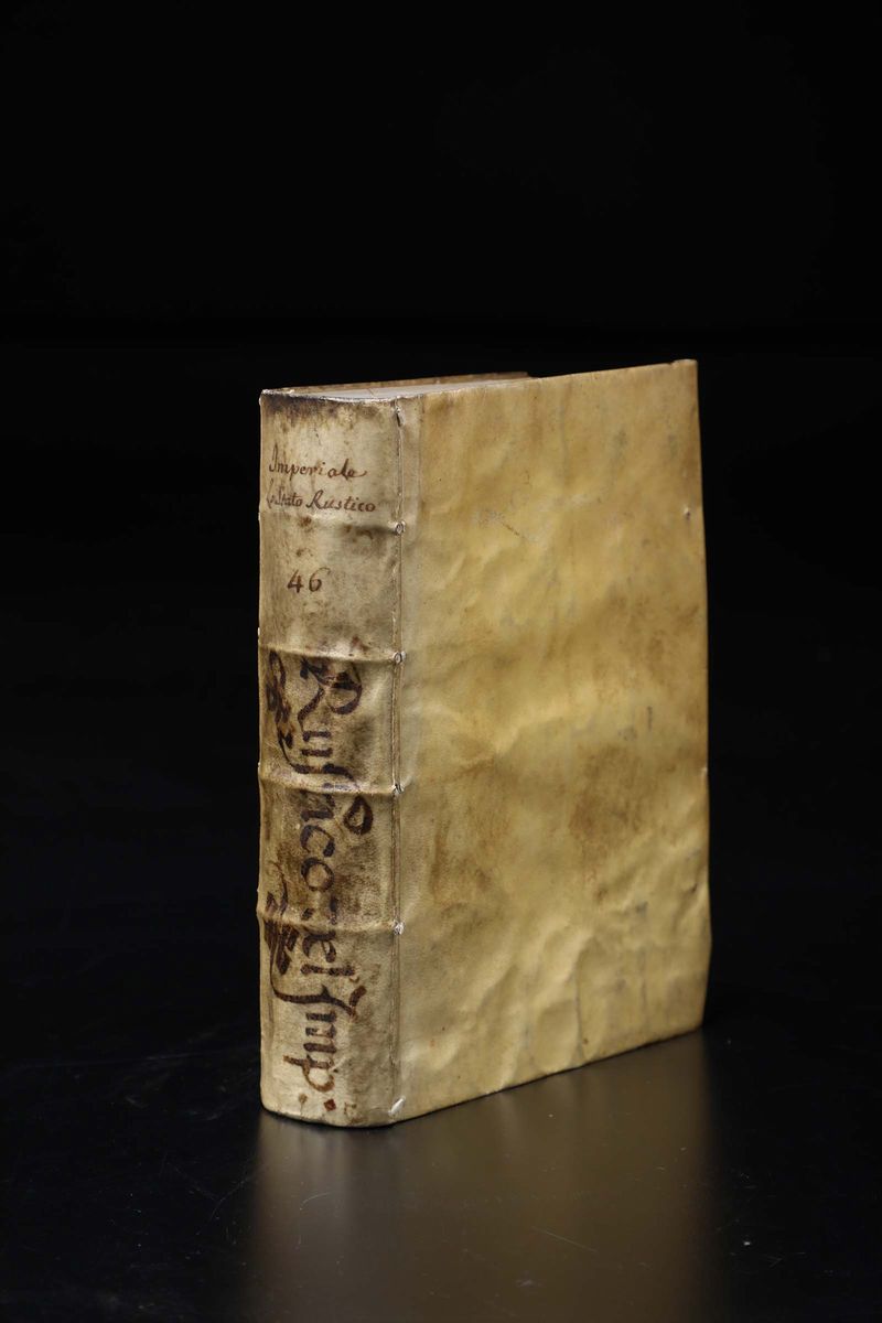 In-4°. Legatura coeva in pergamena floscia. Qualche gora e brunitura ma nel complesso esemplare genuino.