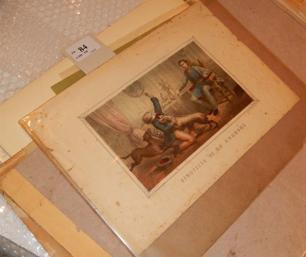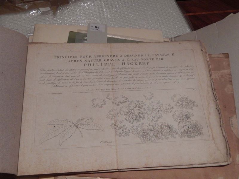 Bella coloritura coeva. Piccole mancanze e strappo. Si uniscono una serie di stampe diverse tra cui alcune plances della Diderot-D'alembert, alcune tavole del Mattioli e un breve trattato di anatomia ad uso di pittori e scultori e un gruppo di disegni moderni non identificati.