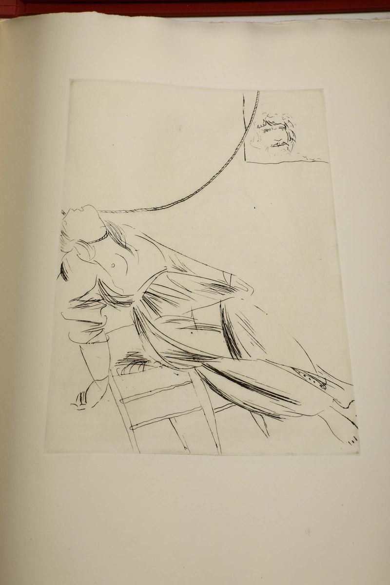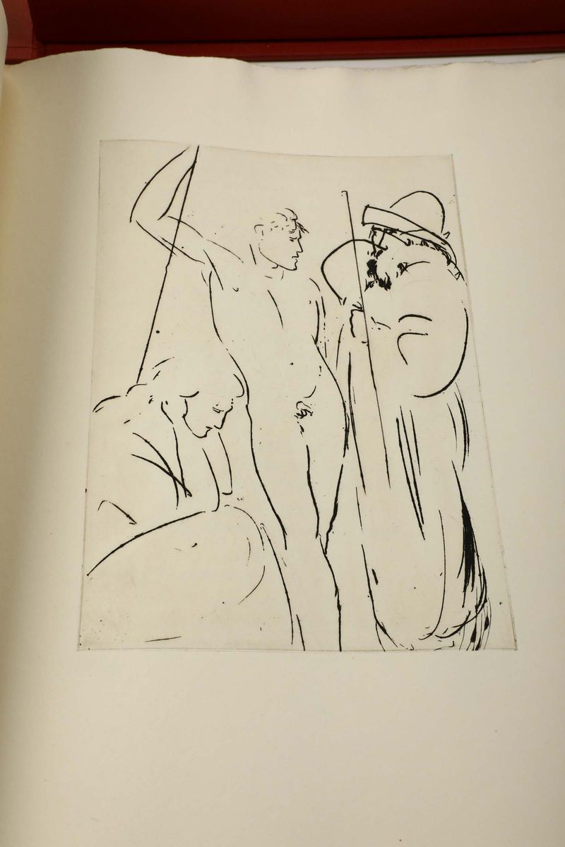 In-folio. Fogli sciolti entro camicia e scatola. Edizione numerata e firmata dall'artista. Questo esemplare conserva eccezionalmente l'ulteriore scatola di invio dello stampatore.
