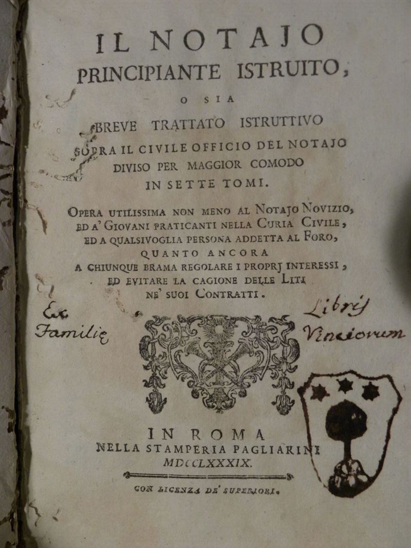 Il notajo principiante istruito o sia breve trattato istruttivo in sette tomi..roma,Pagliarini,1789..