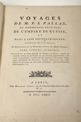 Voyages de M.P.S. Pallas..., Paris, 1793, solo tomo sesto (planches)