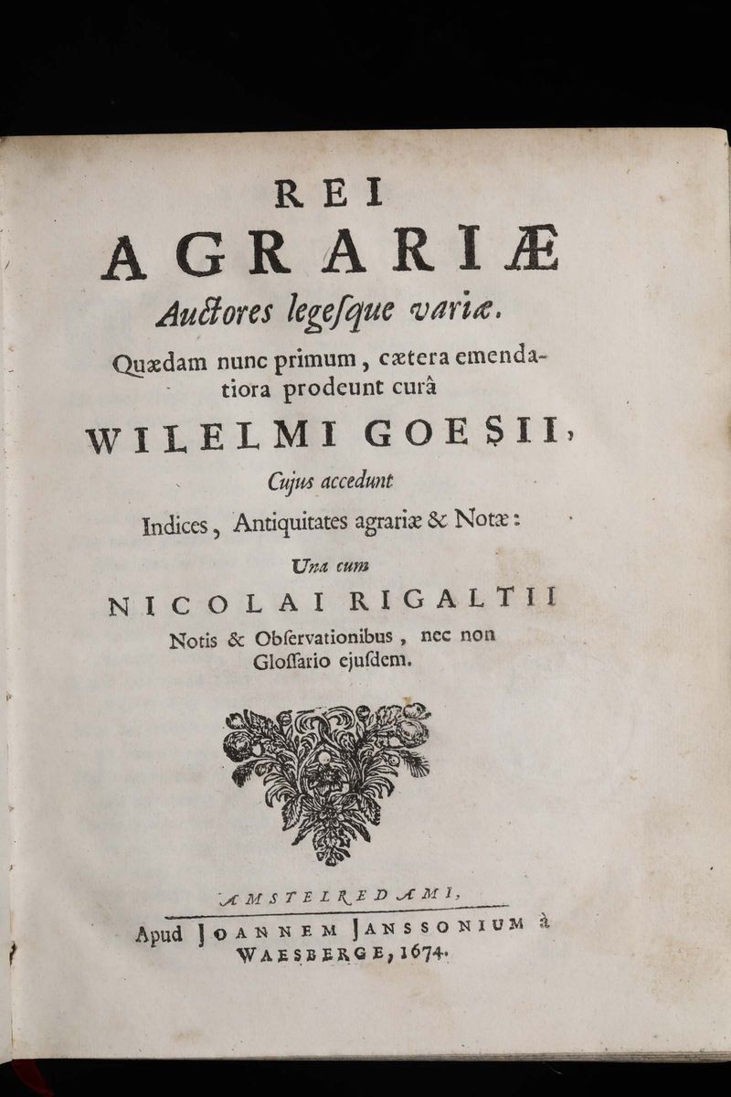 Wilelmi, Goesii / Rigaltii, Nicolai Rei Agrariae Auctores legesque variae..Amstelredami,Apud Janssonium, 1674