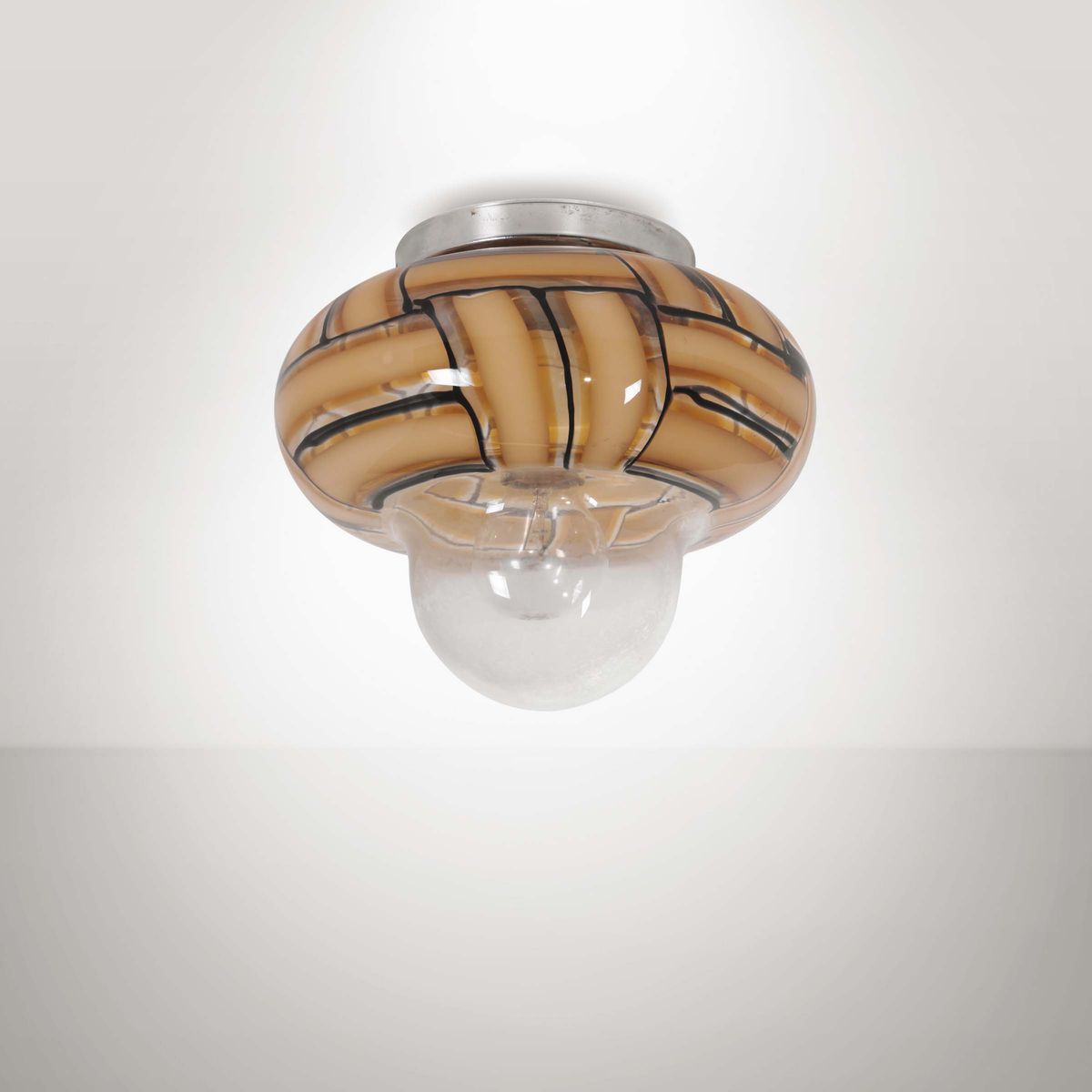 Plafoniera in vetro di Murano con struttura in metallo. Prod. Barovier&Toso, Italia, 1980 ca.