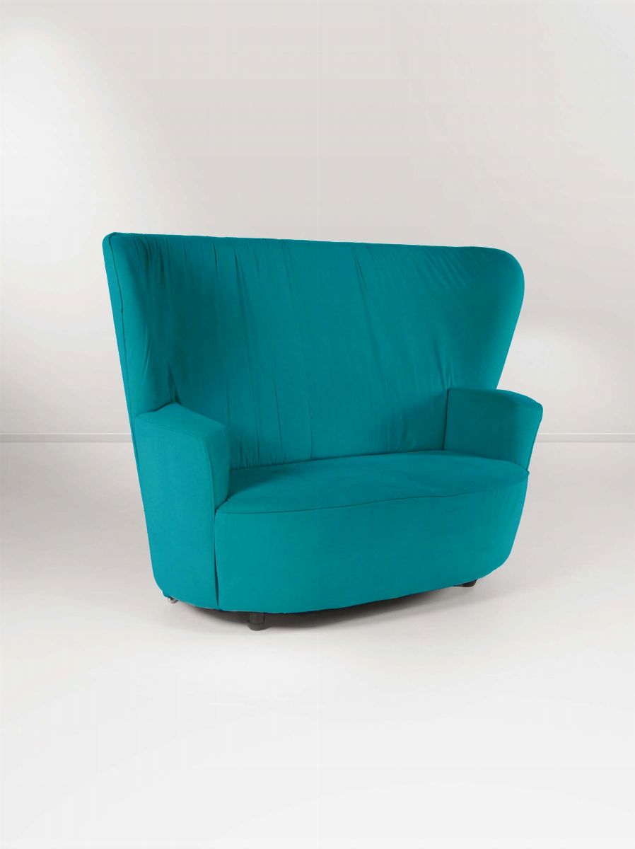 Divano da anticamera con struttura in legno e rivestimento in tessuto