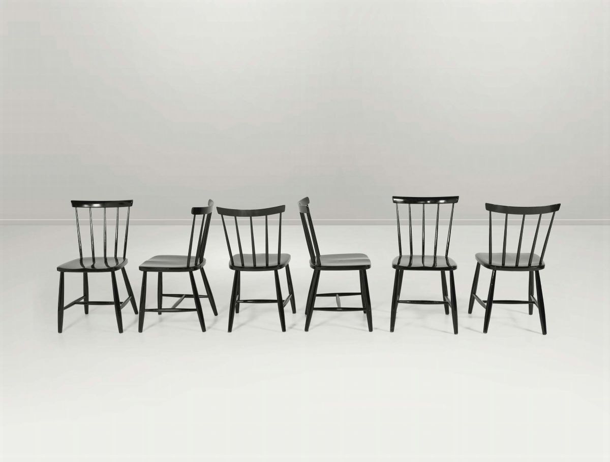Sei sedie in legno laccato. Marchio originale. Prod. Haga Fors, Svezia, 1950 ca. cm 40x80x40