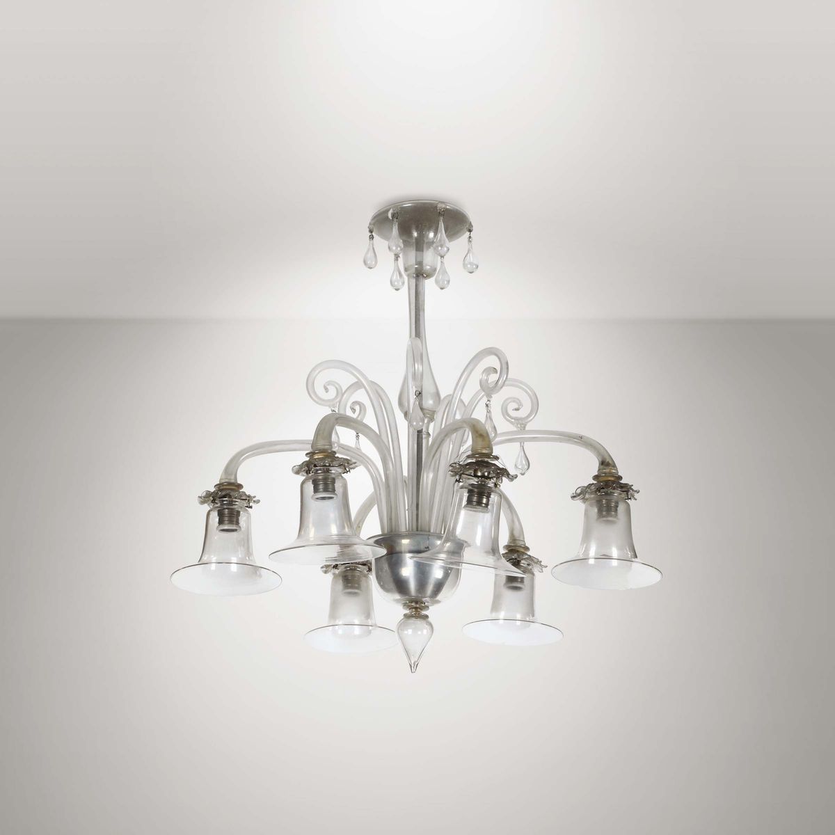 Lampadario in vetro di Murano sof ato con struttura in metallo. Prod. Italia, 1930 ca.