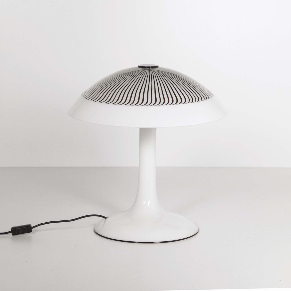 Lampada da tavolo con struttura in vetro di Murano e metallo. Etichetta originale Effetre international