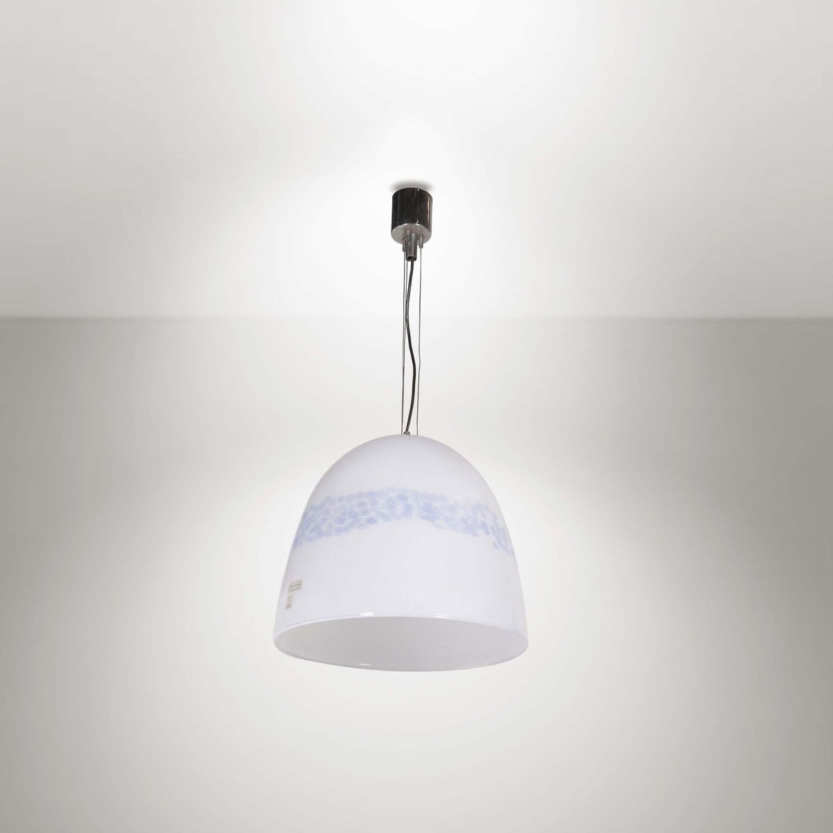 Lampada a sospensione con struttura in ottone e diffusore in vetro di Murano. Etichetta originale effetre international.